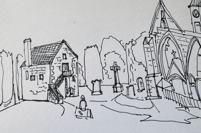 I also headed up to Inverness recently to join the Blackisle Sketchers in Fortrose. We met in the grounds of the beautiful red sandstone ruins of Fortrose Cathedral. Each of us picked a spot and sketched the building from our own perspective. Afterwards, we warmed up with hot chocolate in a local café, chatting about sketching and sharing ideas. It was such a lovely way to spend the day — a small, welcoming group and a great mix of art and conversation.