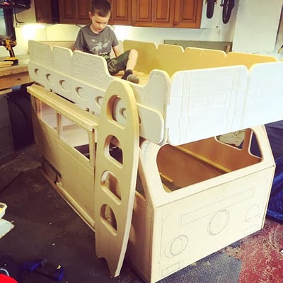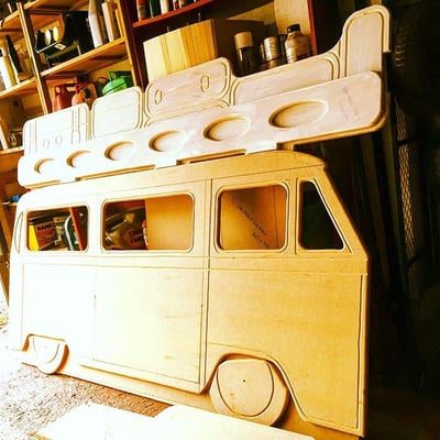 The Campervan bed is one of my favorite projects, and I'm thrilled to share it with you! Designed for my son Jamie when he outgrew his little kid's bed, this high sleeper mattress is not only functional but also fun. Constructed from 18mm MDF and planed pine, it has been sealed and painted to create a smooth, durable finish. The bed features a hidy hole place below, perfect for playing or just hanging out.